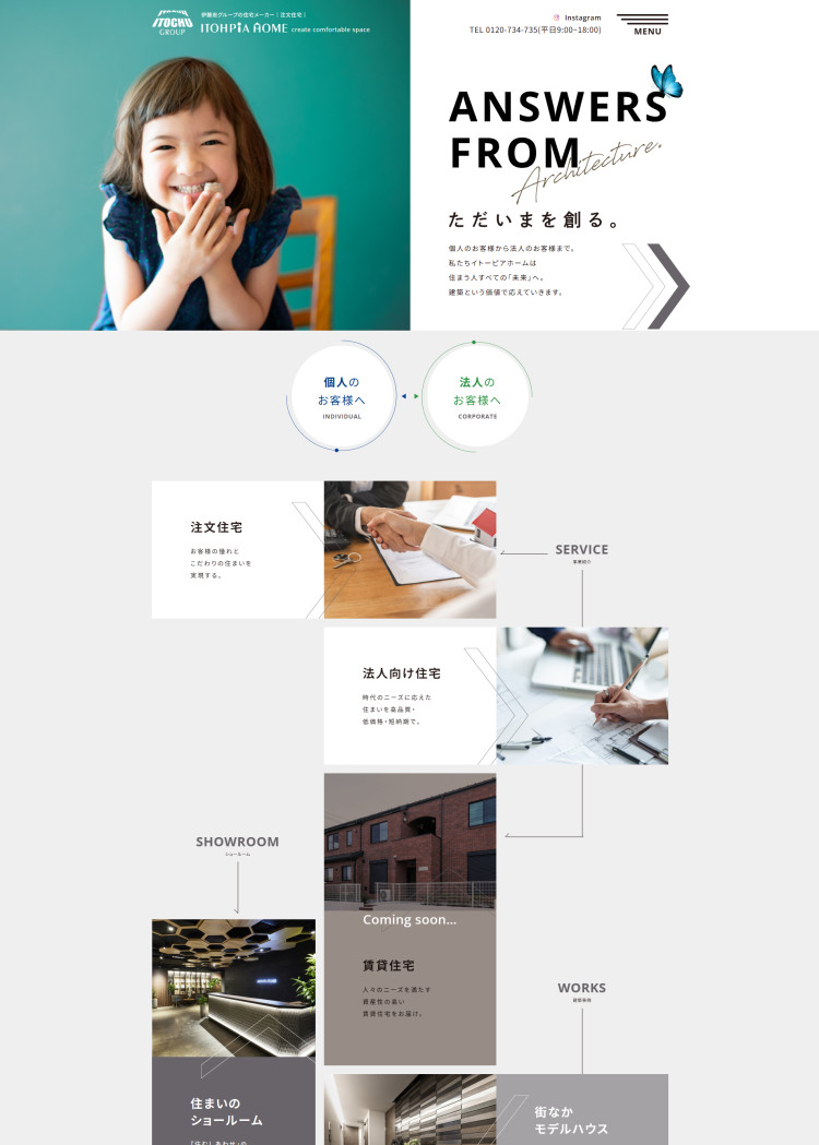 2025.9.11 ニュースリリース イトーピアホーム株式会社の注文住宅サイトを制作しました。 イトーピアホーム株式会社様の注文住宅サイトを制作させて頂きました。 イトーピアホーム株式会社の注文住宅サイト 制作実績一覧